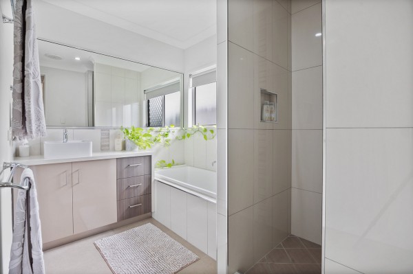 - A spacious main bedroom with a walk-in robe and ensuite finished with stunning floor-to-ceiling tiles, double vanity and 2-pac cabinetry.