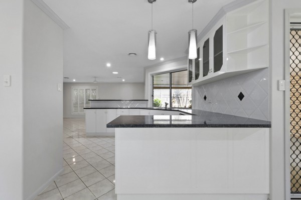 - Large kitchen with walk-in pantry, breakfast bar & pendant lighting