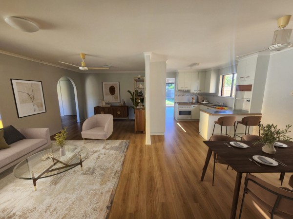 - This home is perfect for those seeking comfort, space, and a newly renovated living area. The large living and dining areas are designed to suit a variety of lifestyles, making this a great option for those who love to entertain or need room for larger furniture.