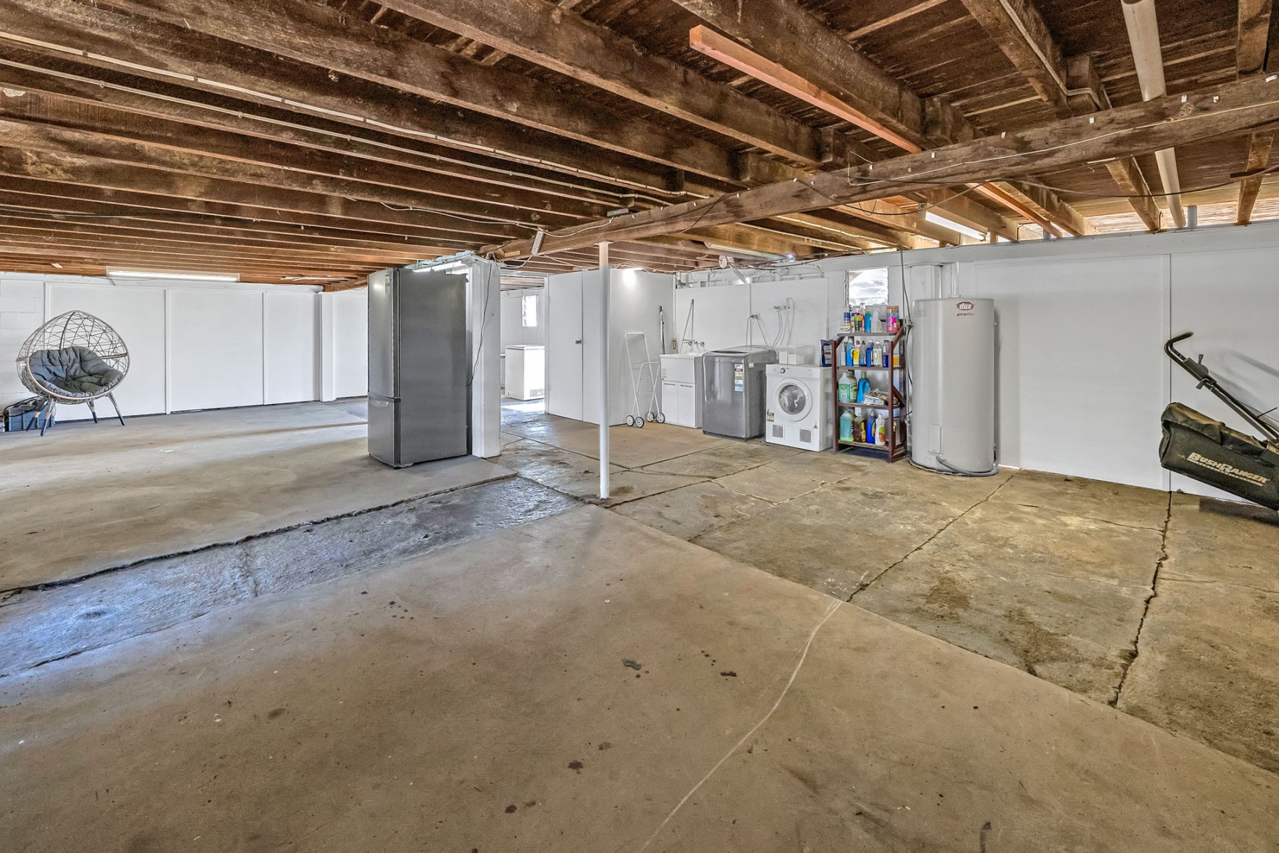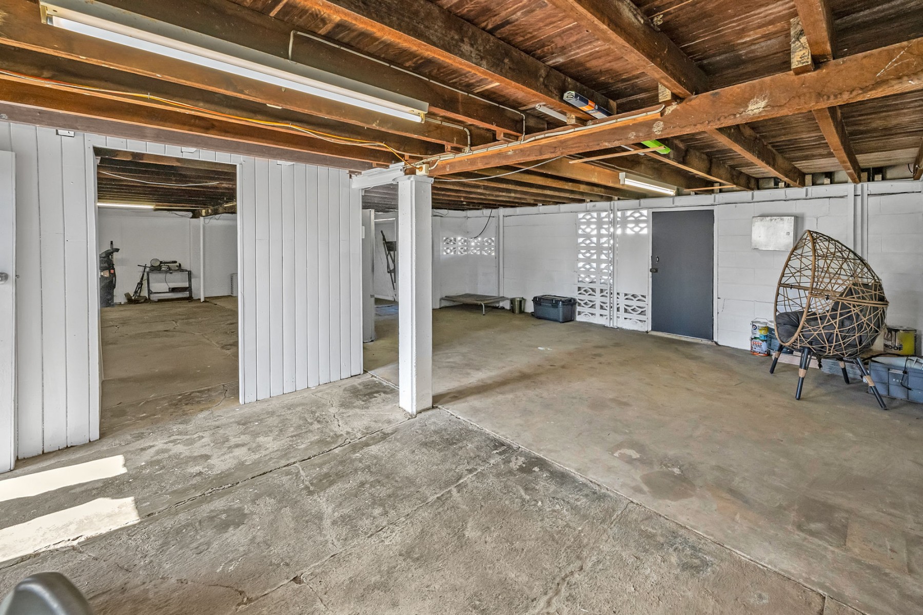 There is an enclosed downstairs area with parking for a car, plenty of storage space and potential for a multitude of uses for someone who wants to work from home or create space for kids.