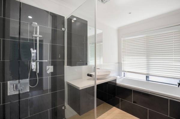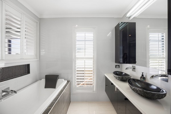 - Four generous bedrooms, all with split system air conditioning; master suite features mirrored wardrobes, a luxurious ensuite with double vanity, large shower and relaxing bath