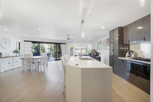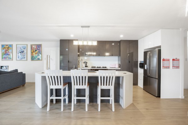 - Stylish, well-equipped kitchen with stone benchtops, large island, gas cooktop, pop-up power points and dual pantries
