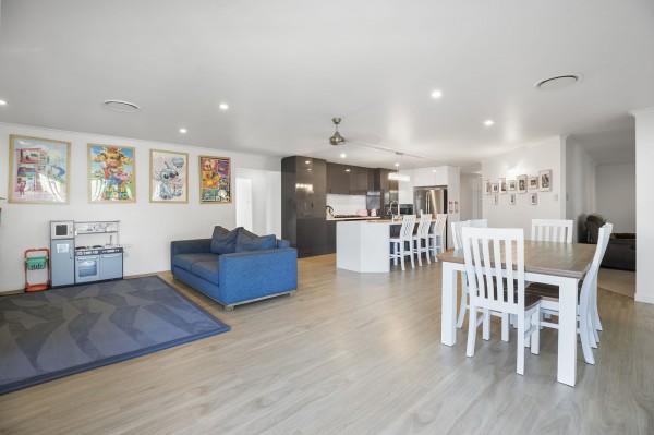 - Open-plan living and dining area with timber-look vinyl flooring, flowing onto a separate lounge/media room - ideal for movie nights or quiet downtime