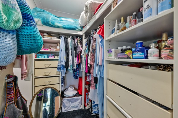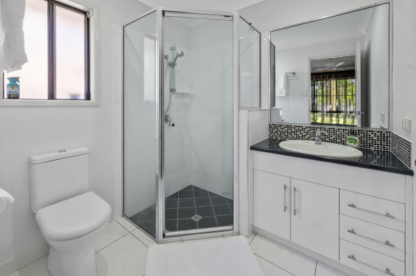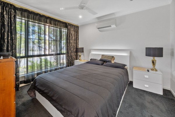 - Three bedrooms, all with fans and built-in wardrobes. The main bedroom has a split system air-conditioner, an ensuite and a walk-in wardrobe