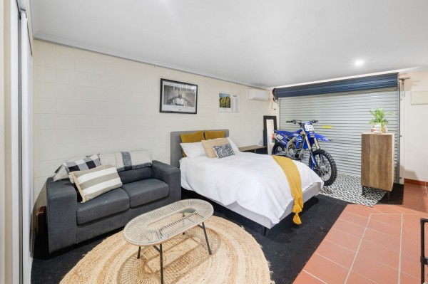 •	Large garage, currently converted to a multi-purpose room with air-conditioning