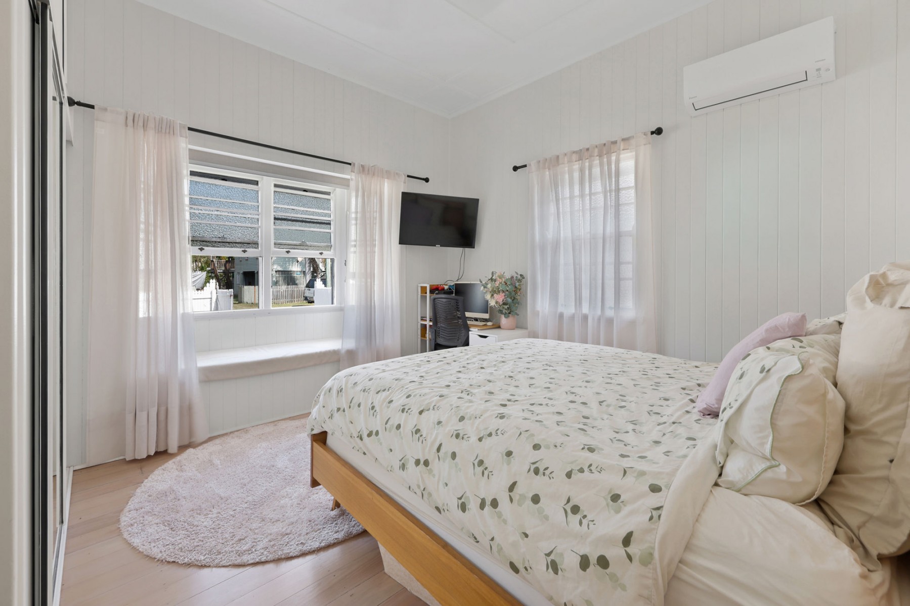 Featuring four generous bedrooms, an updated bathroom and kitchen, and freshly painted interiors, the home is fully air-conditioned for year-round comfort.