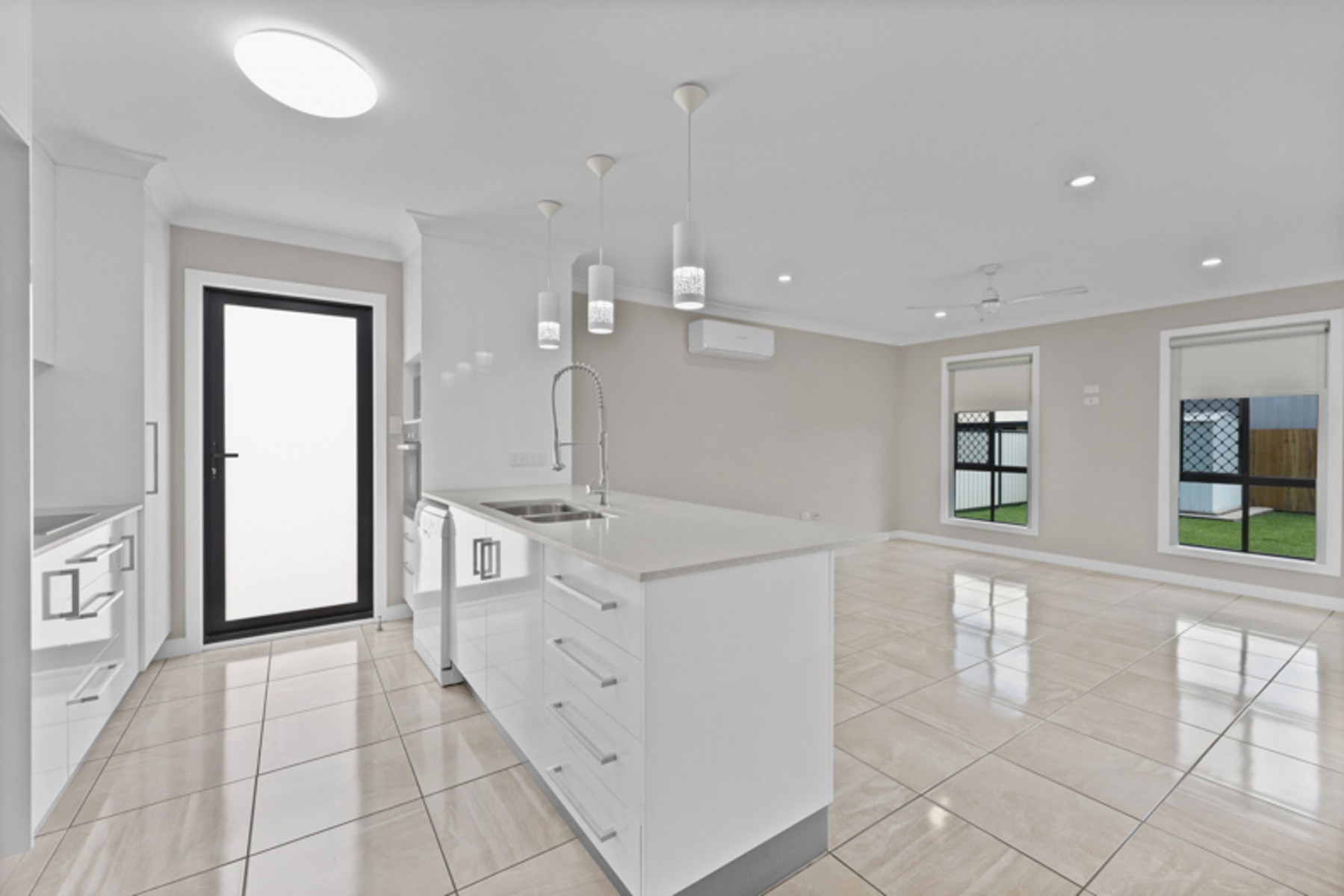 - Open-plan living connecting kitchen, dining, and lounge areas