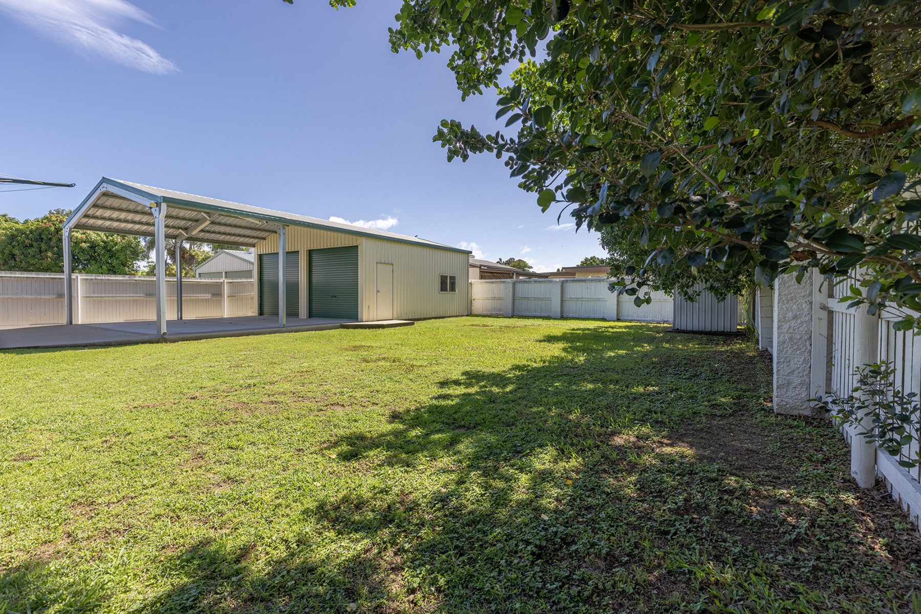 - Powered two-bay shed plus high-clearance double carport and concrete surround