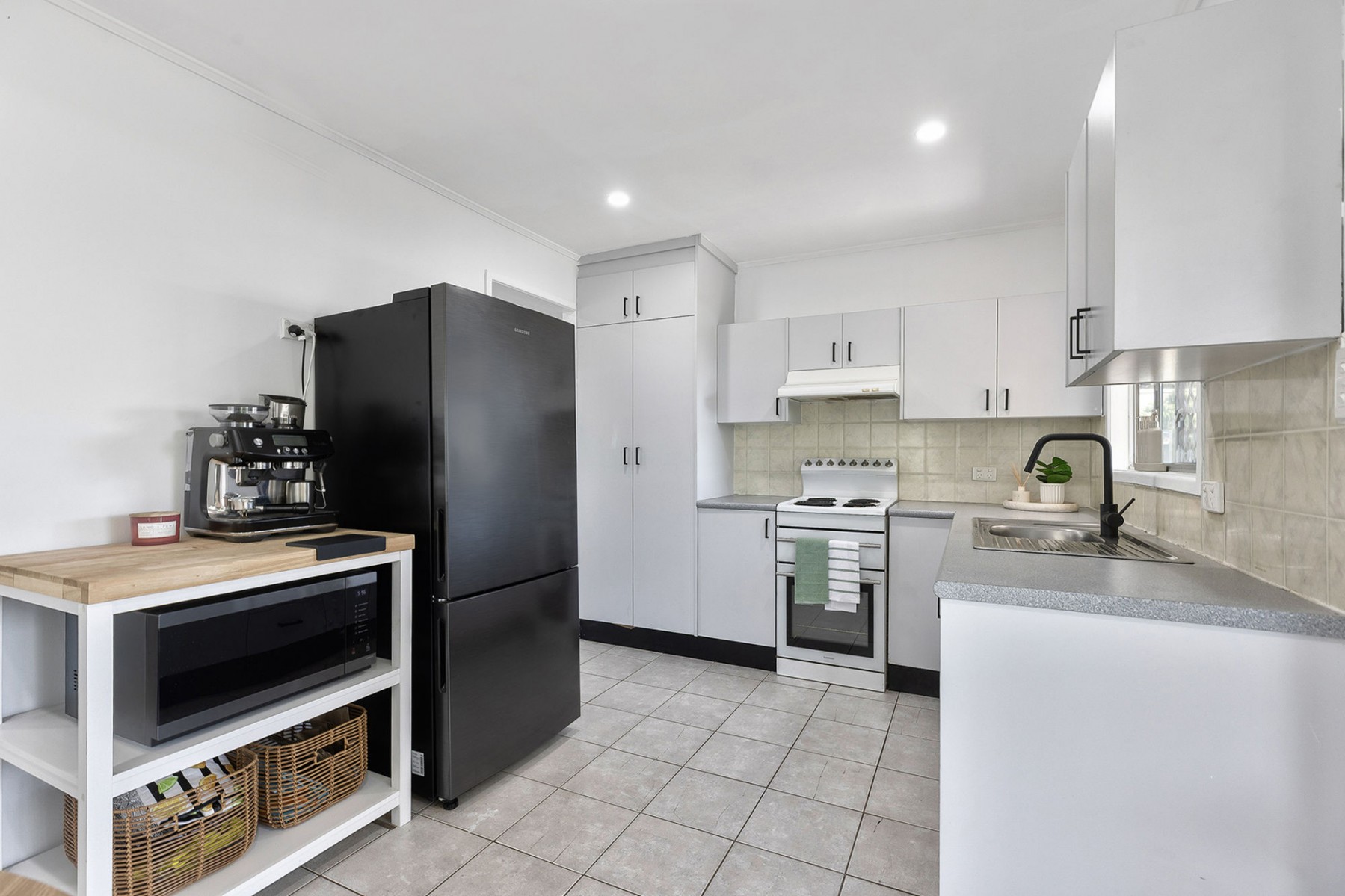- Original kitchen with tiled floors and functional layout
