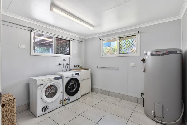 - Downstairs tiled area with separate toilet, laundry and multipurpose room
