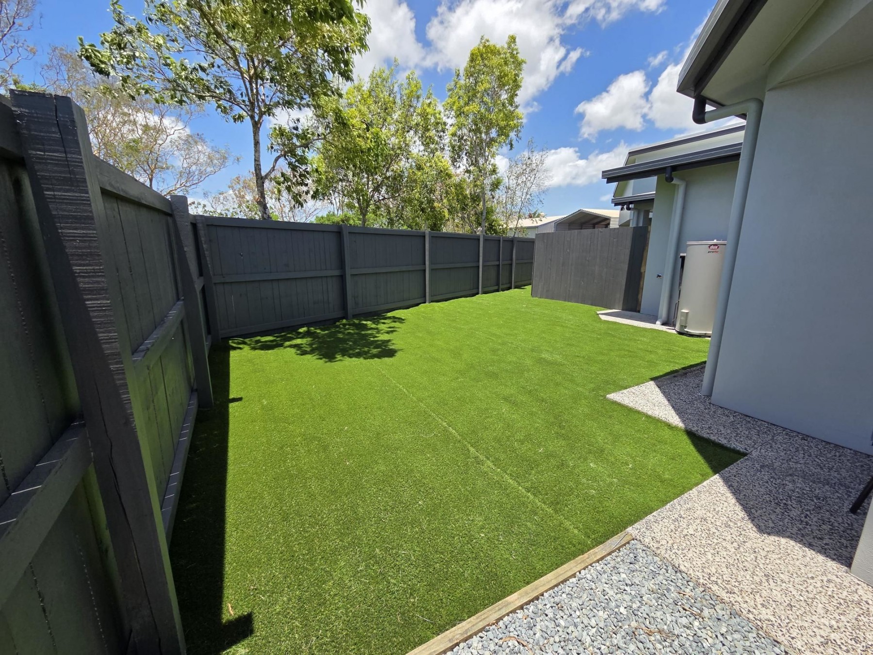 - Low-maintenance artificial grass - no lawn care required