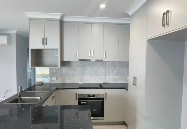 - Contemporary kitchen with ample storage, generous bench space, and a dishwasher