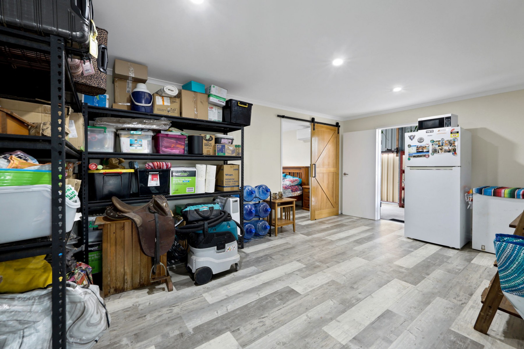 For those needing serious shed space, the large 3-bay shed is a standout feature, with one bay converted into a work/storage area complete with a mezzanine floor. There are also two built-in multi-use living areas, perfect as a home office, gym, or additional lounge spaces.