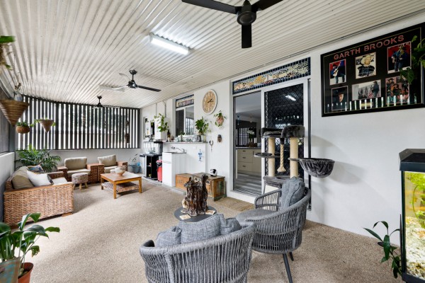 Inside, you'll find comfortable living with three well-sized bedrooms, all complete with air conditioning, fans, and built-in robes. The home features a spacious open bathroom, while a second toilet conveniently services the outdoor entertaining areas.